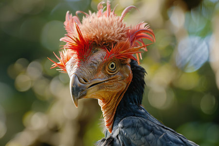Featuring a close up of a bird with red hair, high quality, high resolution