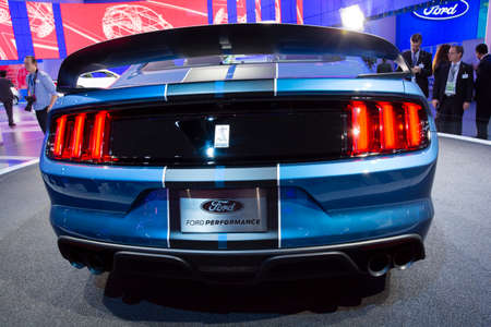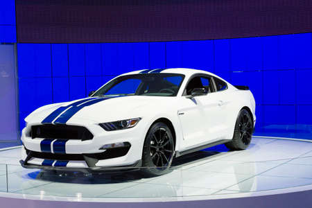 Detroit, MI, USA - January 12, 2015: Ford Shelby GT 350 on display during the 2015 Detroit International Auto Show at the COBO Center in downtown Detroit.