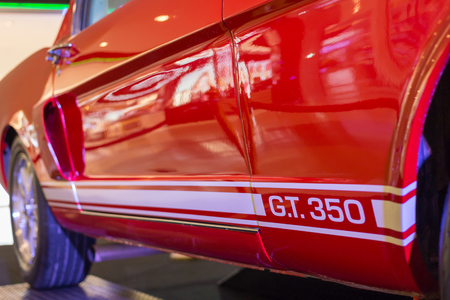 UDONTHANI, THAILAND - AUGUST 19, 2015: A red 1965 Ford Mustang GT350 at the ISAN mini motor show 2015 on August 19, 2015 in Udonthani, Thailand
