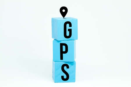 blue cubes with GPS letters and a white background