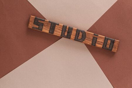 Handmade title with inscription studio on a paper brown background