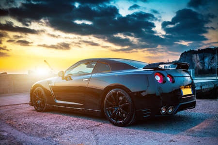 SISTIANA, ITALY JUNE 12, 2013: Photo of a Nissan GT-R Black Edition. The Nissan GT-R is a 2-door 2+2 sports car produced by Nissan and unveiled in 2007.