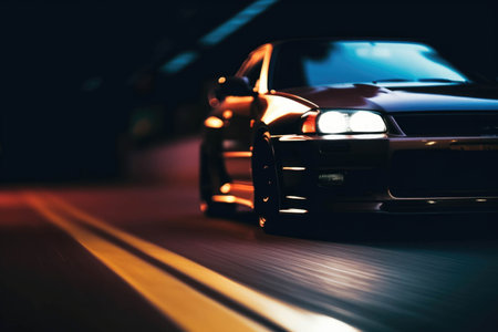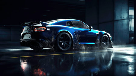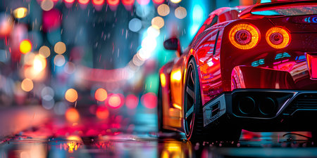 Elegant modern art with sport car on night street. Modern background