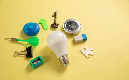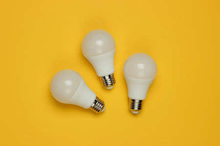 LED, New technology light bulb on yellow background, Energy super saving electric lamp is good for environment.