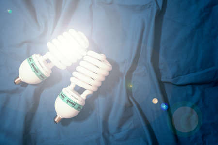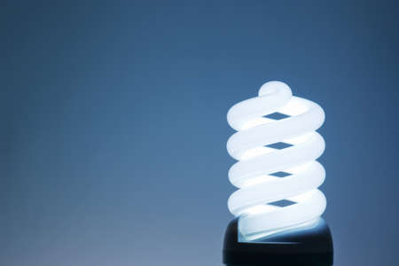 Compact fluorescent energy saving light bulb isolated on the blue background