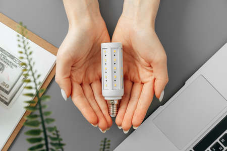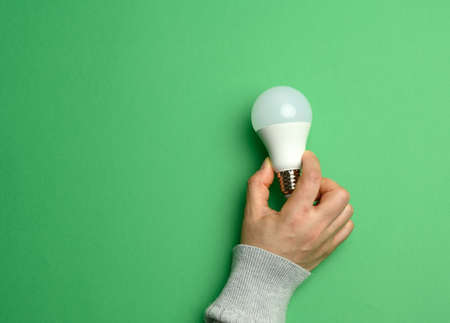 Led energy-saving light bulb in the hand of a person. The concept of modern economical lighting