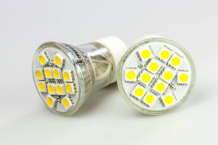 Captivating image of a bright LED light bulb featuring multiple illuminating dots, ideal for showcasing innovative home lighting solutions and modern decor.
