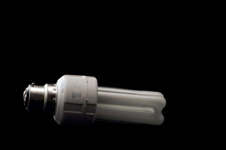 A compact flourescent bulb on a green background - energy saving, environmental theme