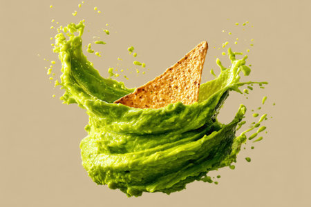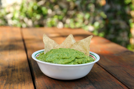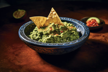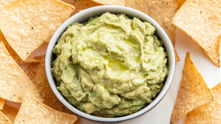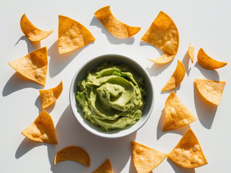 Fresh guacamole with tortilla chips and other ingredients, creating a vibrant and appetizing Mexican-inspired culinary scene