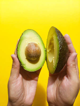 Hands Holding a Fresh Avocado Cut in Half