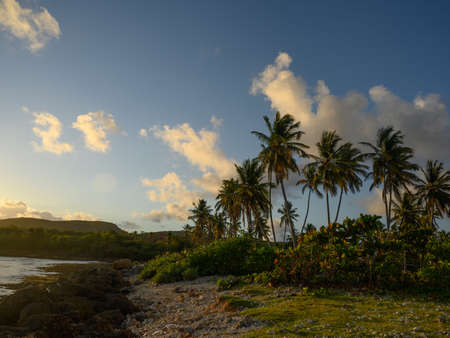 Sun shining over La Perle beach in Guadeloupe, French west indies. Lesser Antilles, Caribbean sea