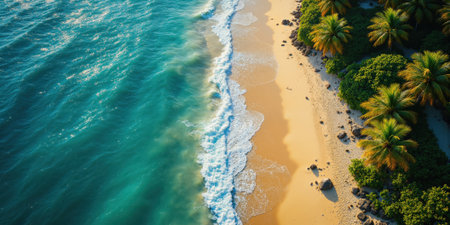 Aerial View of a Tropical Ocean Shoreline with Deep Turquoise Waters A breathtaking natural abstract background capturing the seamless transition