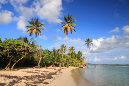Guadeloupe sandy beach. Caribbean vacation landscape. Bois Jolan Beach (Plage de Bois Jolan).