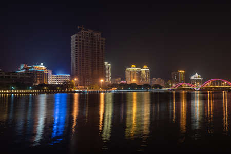 SANYA, HAINAN, CHINA - OCTOBER 13: Scenic night cityscape view of Sanya city at October 13, 2019 in Sanya, Hainan, China