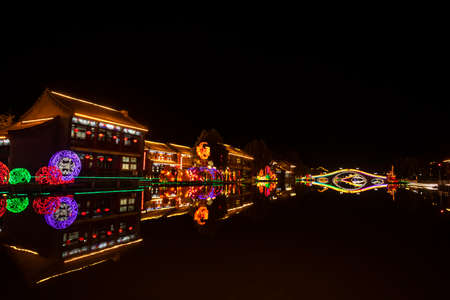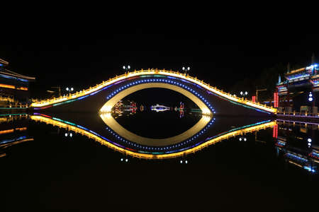 Qingming riverside in Kaifeng, known as “Shui Xiâ€, is beautifully lighted a night. Kaifeng was the capital of the Song Dynasty, 1000 to 1100AD