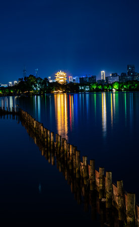 FENGNAN COUNTY, Hebei Province, China-November 3, 2020: Night in Huifeng Lake Scenic Spot