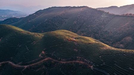 Beautiful landscape view of tea plantation in the morning, North China
