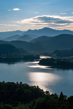 Mountains and lake in the morning, Taipei, Taiwan.