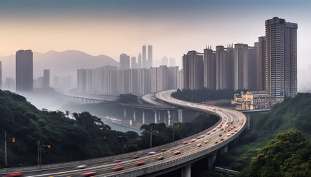 Generative AI The expressway and the modern city skyline are in Chongqing, China.
