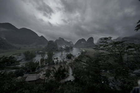 Beautiful view of the mountains area in local North Vietnam. Cloudy, nasty, rainy season