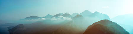 Abstract mountain background with copy space- concept of tourism and travel. Panorama of layers of ridges in Tunektepe Teleferik near Anntalia at sanrise sky