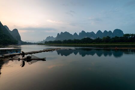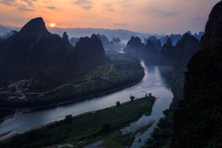 Sunrise Landscape of Guilin, Li River and Karst mountain in China.Morning or late evening in guilin.