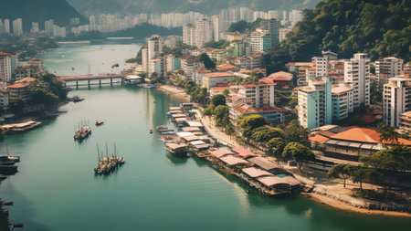 Generative AI : Aerial View Of River And Paraty Historical City Center Surrounded In Tropical Palm Trees Islands In Distance Rio De Janeiro Brazil