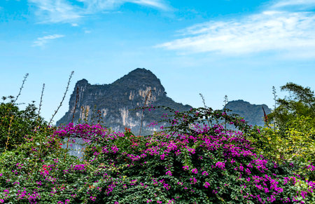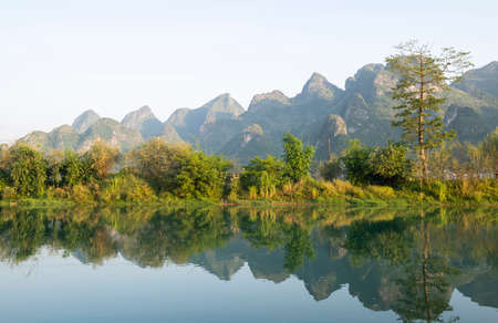 Beautiful panorama of karst mountains in Yangshuo Guilin, China