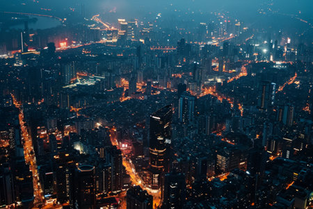 A sprawling cityscape with glowing lights at night AI generated