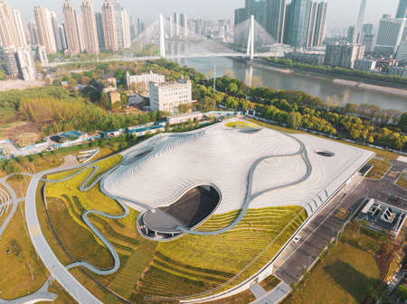 Landscape of Qintai Art Museum in Yuehu Scenic Area, Wuhan, Hubei
