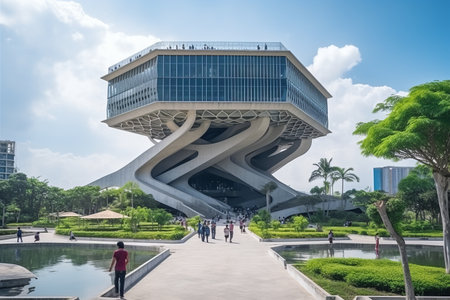 Modern building view of the National Taichung Museum of Fine Arts in Taiwan. it's the first and the only national-grade fine arts museum in Taiwan.