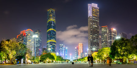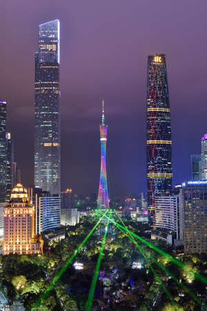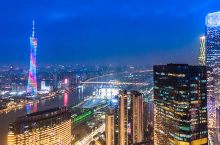 Guangzhou Canton skyline cityscape with skyscrapers buildings in downtown at night panorama in Guangzhou, China