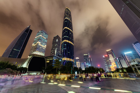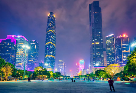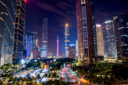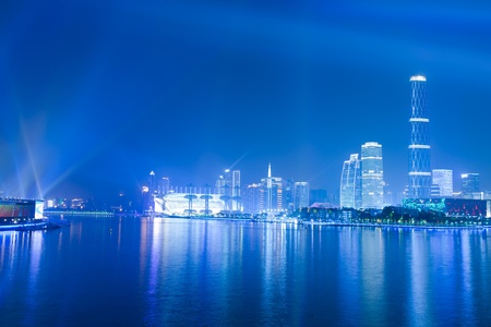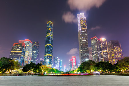 financial district at night in guangzhou china.
