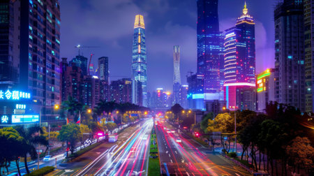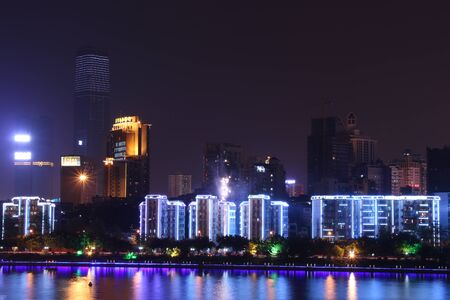 Shenzhen city buildings at night and blurred