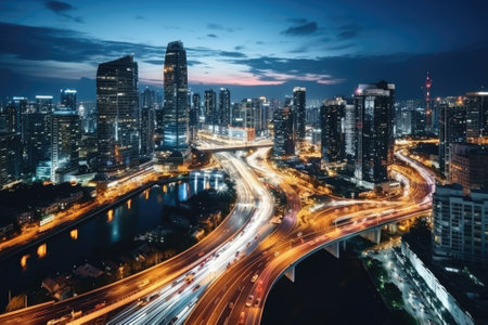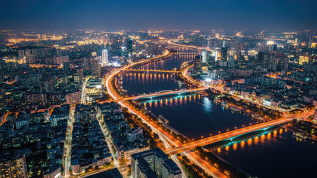 City night view of bridges and high rise buildings
