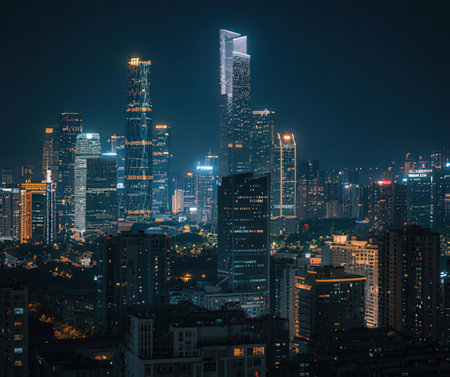 modern buildings skyline at night in guangzhou financial district