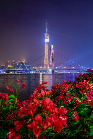 night view of Guangzhou Tower and Pearl River
