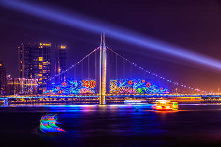 Night scene of Liede bridge with brilliant spot light in Guangzhou city of China