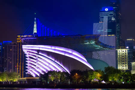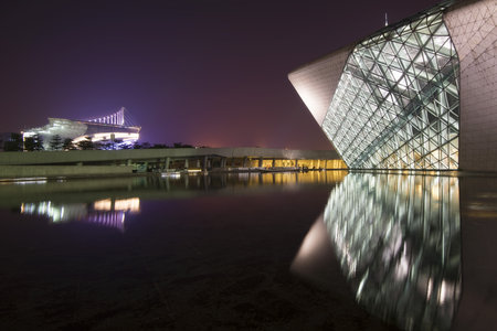 Guangzhou, China - Nov. 05: Guangzhou Opera House night landscape on Nov. 05, 2011 in Guangzhou, China. It is designed by architect Zaha Hadid and has become one of the seven new landmarks in Guangzhou