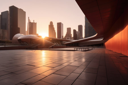 Immerse yourself in the breathtaking beauty of the city at sunrise with this captivating image. A city square serves as the vibrant heart of the urban landscape, while the modern architecture of the skyline stands tall against the colorful sky. The warm hues of the rising sun cast a soft glow, illuminating the architectural marvels and creating a mesmerizing atmosphere. This composition captures the harmony between nature and human ingenuity, offering a glimpse into the captivating allure of the urban sunrise. Perfect for projects related to cities, architecture, urban development, travel, and the magical moments of a new day