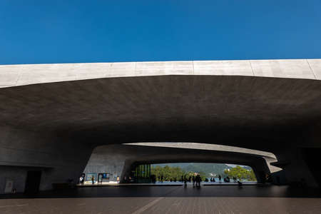 Nantou, Taiwan - November 5th, 2019: modern architecture of Xiangshan Visitor Center at Sun Moon lake, Taiwan, Asia
