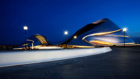 BAKU, AZERBAIJAN - APRIL 28, 2018: The Heydar Aliyev center in Baku. Modern architecture, futuristic white building smooth shapes