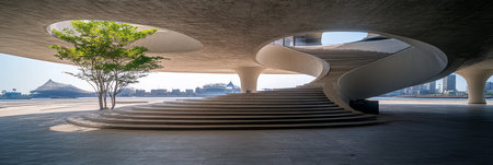Modern Architectural Design of a Building with a Spiral Staircase, Urban Landscape, Day time