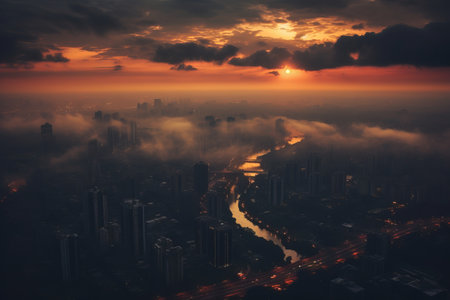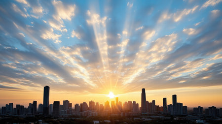 A Stunning sunset over city skyline with dramatic cloud patterns Generative Ai