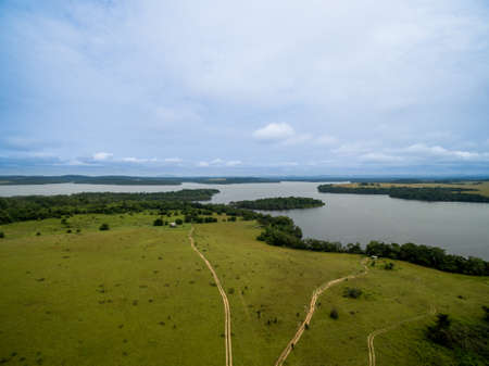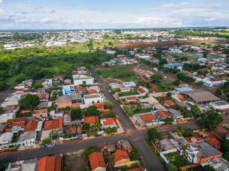 Aerial landscape during summer in city of Tangara da Serra in Mato Grosso Brazil