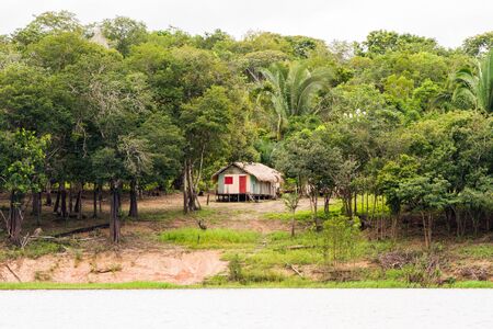 Amazon River, Peru - May, 2016: Small village on the bank of the Amazon River. Amazon. South America.