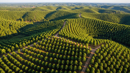 Vibrant green foliage covers dense rainforest from above showing intricate tree tops and layered leaves in natural habitat