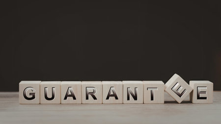 An image of wooden blocks arranged to spell out the word 'GUARANTEE' on a flat surface.