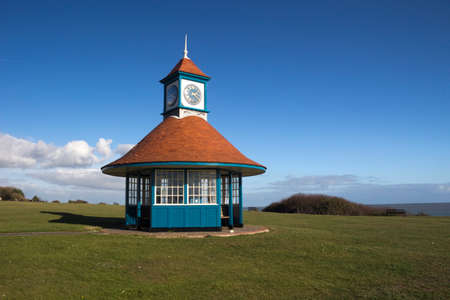 Clock tower and shelter on the greensward at Frinton-on-Sea, Essex, England