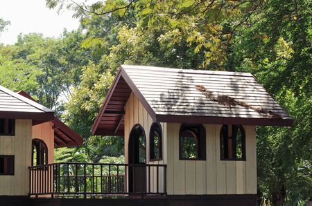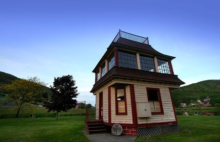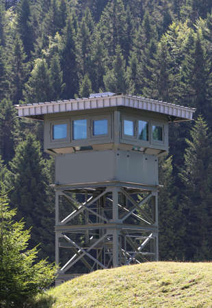 Beautiful panoramic view of a wooden watchtower in the mountains
